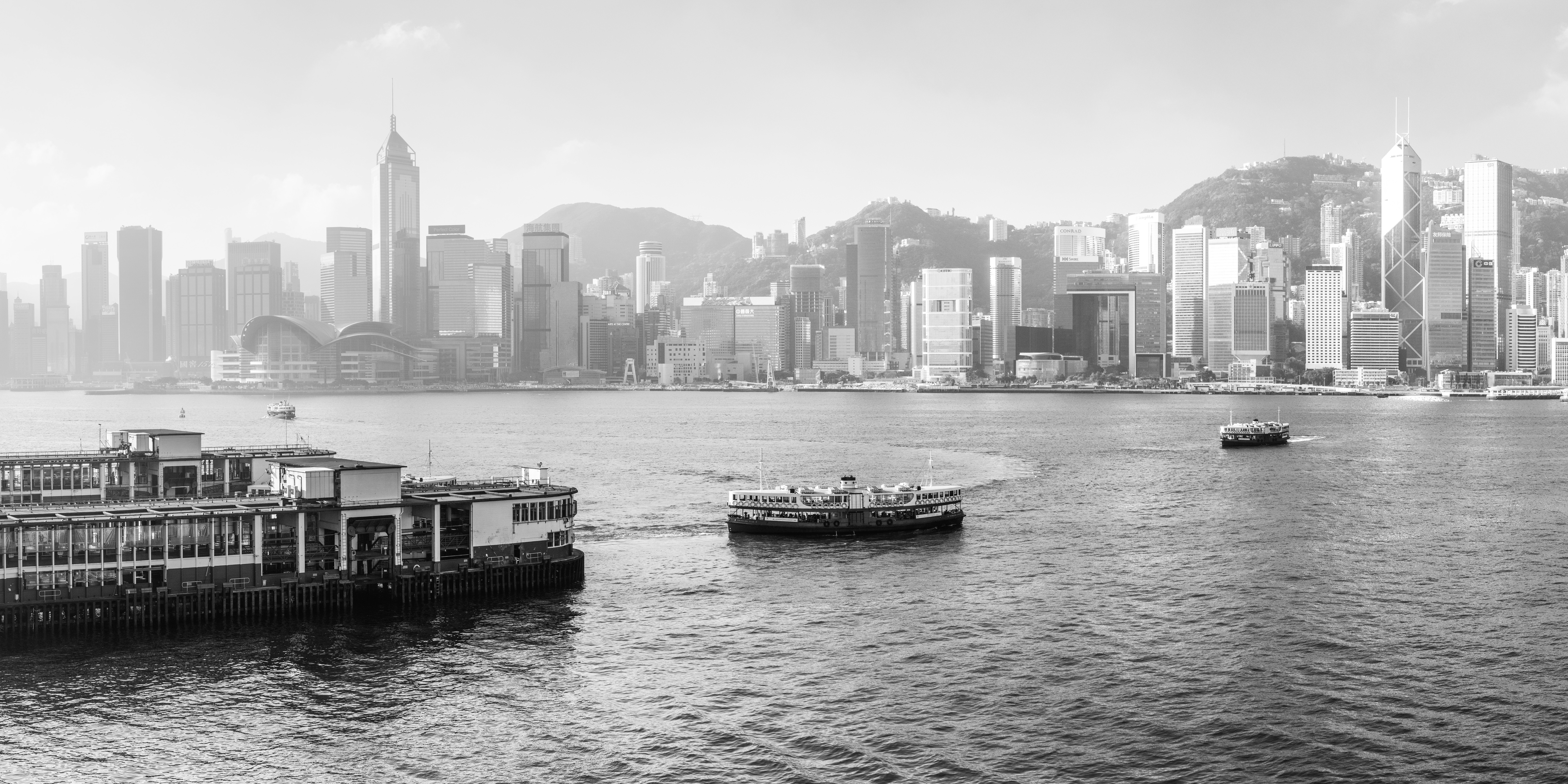 Hong Kong Skyline & Star Ferry Black and White