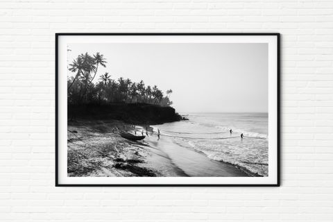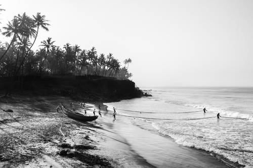 Indian Beach and Fishermen Landscape Black and White