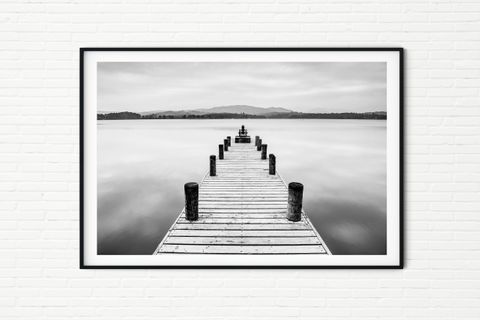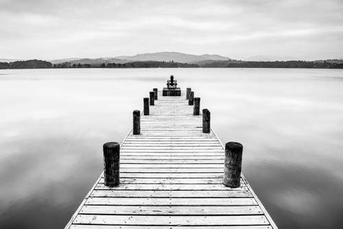 Minimalist Black and White Jetty Landscape in Lake District